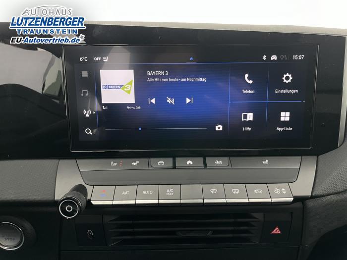 Multimedia Infotainment System mit 10?-Fahrerinfodisplay und 10?-Touchscreen-Farbdisplay (Pure Panel), 6 Lautsprecher, Digitaler Radioempfang (DAB+), Freisprecheinrichtung via Bluetooth-Schnittstelle, Haifischflossenantenne in Hochglanz-schwarz, Kabellose Smartphone-Integration via Apple CarPlay und Android Auto, USB-Anschluss und USB-Ladegerät, Automatisches Abblendlicht, Fernlicht-Assistent, LED-Blinker, LED-Innenraumbeleuchtung inkl. Leseleuchten, vorn und hinten, sowie Kofferraumbeleuchtung, LED-Rückleuchten, LED-Scheinwerfer, LED-Tagfahrlicht, manuelle Scheinwerfer-Leuchtweitenregulierung, Solar Protect®-Wärmeschutzverglasung, stark getönt, im Fond, Innenrückspiegel, autom. abblendend, Lenkrad aus veganem Kunstleder, abgeflacht, mit Lenkradfernbedienung, Lenkradheizung, Mittelkonsole mit Getränkehalter, Staufächer, Ein-Zonen-Klimatisierungsautomatik, Komfort-Paket Edition, 16''-Leichtmetallfelgen mit Allwetterreifen, Reifen-Reparatur-Set, Not- und Pannenruf, 2-Wege-Kopfstützen, Beifahrersitz 6-fach einstellbar (Länge, Höhe, Lehnenneigung), Fahrersitz: Ergonomischer Sport-Aktiv-Sitz (AGR1), 10-fach einstellbar (Länge, Höhe, Lehnenneigung, Sitzkissenneigung, Oberschenkelauflage, Sitzheizung, merhstufig für Fahrer und Beifahrer, Automatischer Geschwindigkeits-Assistent, Frontkollisionswarner mit automatischer Gefahrenbremsung, Fußgängererkennung, Müdigkeitserkennung, Regensensor, Schlüsselloses Startsystem ?Keyless Start?, Spurhalte-Assistent, Verkehrsschilderkennung, Außenspiegel: elektrisch einstell- und beheizbar, manuell anklappbar, Außenspiegelgehäuse in Schwarz, Dach-Designlinie in Schwarz, Dachreling, Opel Vizor mit Rahmen in Hochglanzschwarz, EU-Fahrzeug mit Tageszulassung