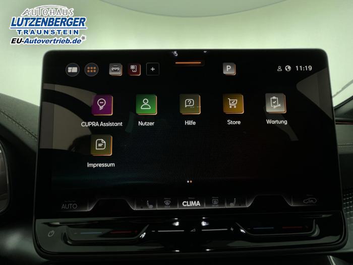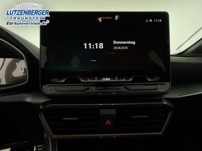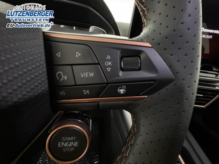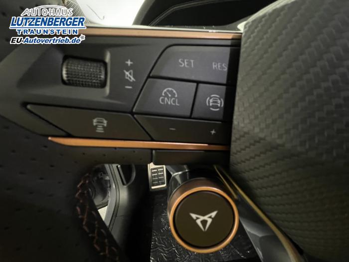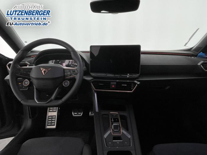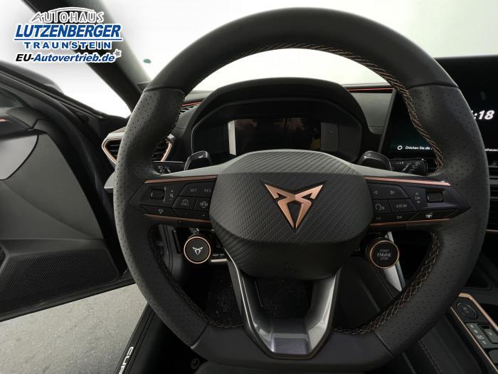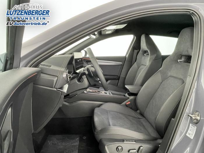 6 Lautsprecher, Android Auto, App Connect, Apple CarPlay, Bluetooth, Connectivity Box inkl. Wireless Charger, Digitaler Radioempfang DAB , Freisprecheinrichtung, Navigationssystem, Smart Link, Sprachsteuerung, Touchscreen-Display, USB-C-Schnittstelle 2 vorne / 2 hinten (Ladefunktion), Wireless Full Link Connectivity inkl. Android Auto und Apple CarPlay, Automatisch abblendendes Fernlicht, Automatische Coming- und Leaving-Home-Funktion, Blendfreies Fernlicht, Infinity Light, Dynamisches LED-Lichtband am Heck und beleuchtetem CUPRA Logo, Lichtsensor, Matrix-LED-Scheinwerfer mit Signatur Ceremony, Nebelscheinwerfer, Smart Ambient Light, Tagfahrlicht, Türeinstiegsleisten beleuchtet, vorne, Voll-LED-Heckleuchten, Fensterheber elektrisch vorne und hinten, Fensterheber elektrisch, mit Einkleschutz und One-Touch-Funktion, Seitenscheiben ab 2. Sitzreihe und Heckscheibe dunkel getönt, CUPRA Supersport-Multifunktionslenkrad mit CUPRA Mode Selector, beheizbar, Dachhimmel in Schwarz, Innenspiegel automatisch abblendend, Lederlenkrad, Lenkrad höhen- und tiefenverstellbar, Lenkradheizung, Mittelarmlehne vorn, Mittelarmlehne vorne und hinten, Nichtraucherausführung, Schaltwippen am Lenkrad, Sportlenkrad, Variabler Gepäckraumboden mit Staufächern im Gepäckraum, 3 Klimazonen, Climatronic mit 3-Zonen-Temperaturregelung, Dynamic Design Paket, Edge Paket, Intelligent Drive Paket XL (Spurwechselassistent ''Side Assist'' inkl. Totwinkel- und Ausparkassistent mit Ausstiegswarnung Spurhalteassistent Plus inkl. Travel Assist, Emergency Assist und Stauassistent PreCrash Assist (Proaktives Insassenschutzsystem) Top View Kamera Parklenkassistent ''Intelligenter Park Assist''), Licht-und-Sicht Paket, Pure Performance Paket inkl Matrix LED-Scheinwerfern, Winter-Paket (Vordersitze beheizbar), Winterpaket, 19 Leichtmetallräder Sandstorm Black/ Copper, glanzgedreht, Sommerreifen, ABS (Antiblockiersystem), Airbag für Fahrer und Beifahrer, Beifahrerairbag-Deaktivierung, Diebstahl-Warnanlage inkl. Innenraumüberwachung, Back-up-Horn und Abschleppschutz, ESP (Elektronisches Stabilitätsprogramm), ISOFIX-Kindersitz-Sicherungssystem, in der 2. Sitzreihe links und rechts inkl. Top-Tether-Verankerungspunkte, Kopfairbag-System, vorne und hinten, Notruf-Service, PreCrash Assist (Proaktives Insassenschutzsystem), Seitenairbag für Fahrer und Beifahrer, Seitenairbags hinten, Servolenkung, Beifahrersitz höhenverstellbar, CUPRA Sportschalensitze vorne mit Sitzmittelbahn in Dinamica, in Soul Schwarz mit Akzenten in Astro Blau, Elektrische Sitzeinstellung, Fahrersitz elektrisch einstellbar mit Memory Funktion, Fahrersitz höhenverstellbar, Geteilte Rücksitzbank, Lendenwirbelstütze Fahrerseite, elektrisch einstellbar, Rücksitzlehne asymmetrisch geteilt umklappbar, Sitzheizung, Anschlussgarantie 3 Jahre / 100.000 km, CUPRA Connect Plus (3 Jahre), 230-V Steckdose, Automatische Distanzregelung ACC, Automatische Heckklappe, CUPRA Drive Profile, Einparkhilfe vorne und hinten, Elektronische Parkbremse inkl. Auto Hold Funktion, Exit Assist, Fernlichtassistent, Intelligenter Parklenkassistent, Kessy Advanced, Schlüsselloses Schließ- und Öffnungssystem, Müdigkeitserkennung, Regensensor, Reifenkontrollanzeige, Rückfahrkamera, Side Assist inkl. Totwinkelassistent, Spurhalteassistent Plus inkl. Travel Assist, Emergency Assist und Stauassistent, Spurwechselassistent, Top View Kamera, Ultraschall-Einparkhilfe, vorne und hinten, Umfeldbeobachtungssystem Front Assist mit City-Notbremsfunktion, Verkehrszeichenerkennung, Virtual Cockpit, Zentralverriegelung, Adaptive Fahrwerksregelung DCC, Anhängevorrichtung, schwenkbar mit elektrischer Entriegelung und Anhängerrangierassistent, Außenspiegel elektrisch beheizbar, Außenspiegel elektrisch einstell-, anklapp- und beheizbar, Außenspiegel elektrisch einstellbar, Außenspiegelkappen in Dark Aluminium, Dachreling in Glossy Black, Heckklappe elektrisch betätigt (Öffnung & Schließung) inkl. Sensorgesteuerter Öffnung & Schließung (Virtual Pedal), Leisten an den Seitenfenstern (außen) in Glossy Black, EU-Fahrzeug mit Tageszulassung