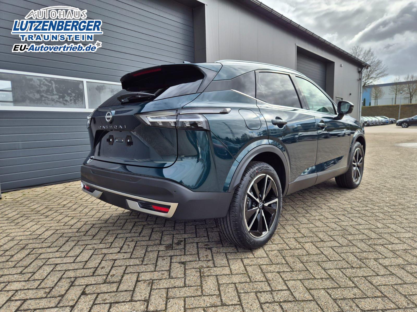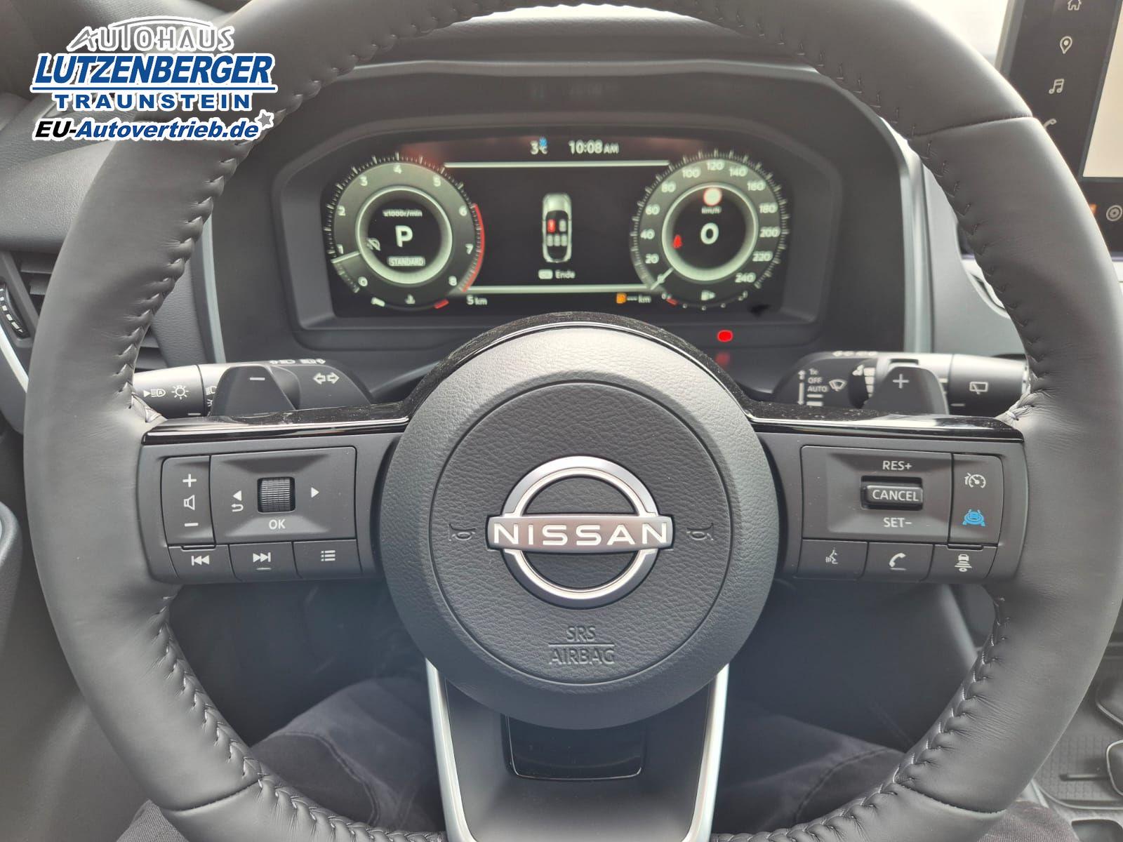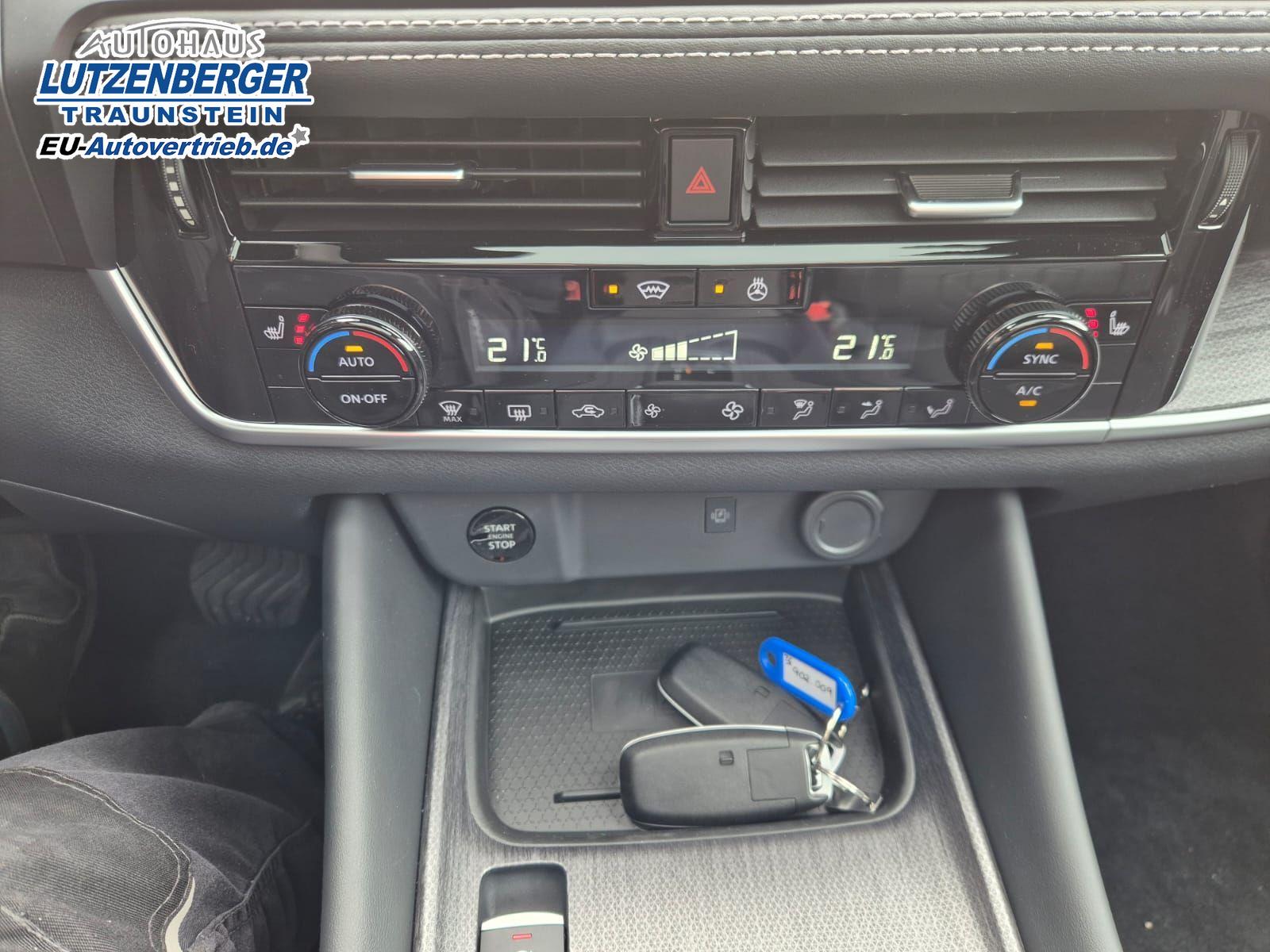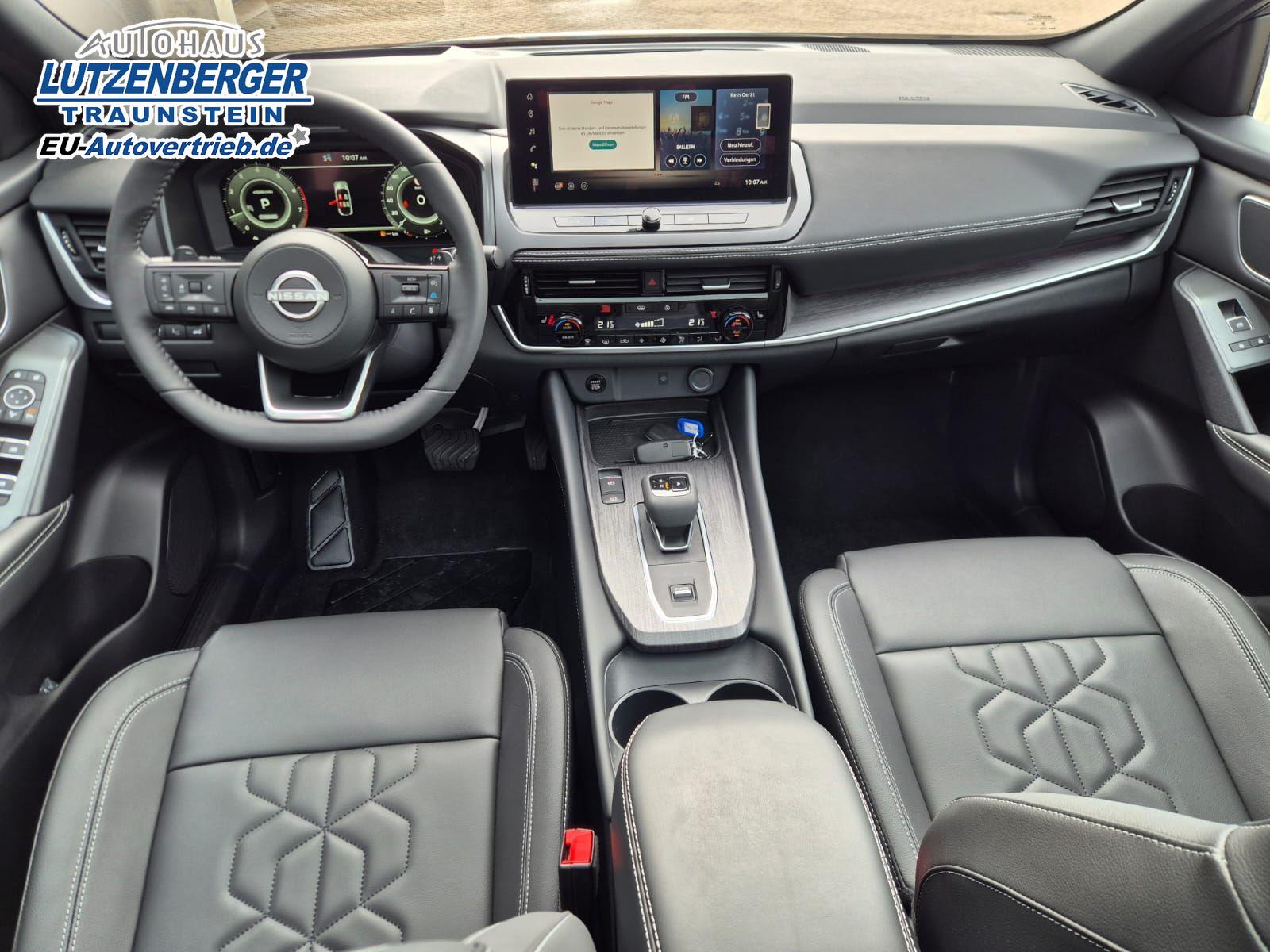 Nissan Qashqai 1.3 DIG-T MHEV 158 PS X-Tronic Tekna Voll-Leder Klimaautomatik PanoGlasdach Sitzheizung Lenkradheizung Navi Head-Up Display elektr. Heckklappe ACC PDC v+h 360°Kamera DAB Bluetooth Touchscreen Apple CarPlay Android Auto 19"LM