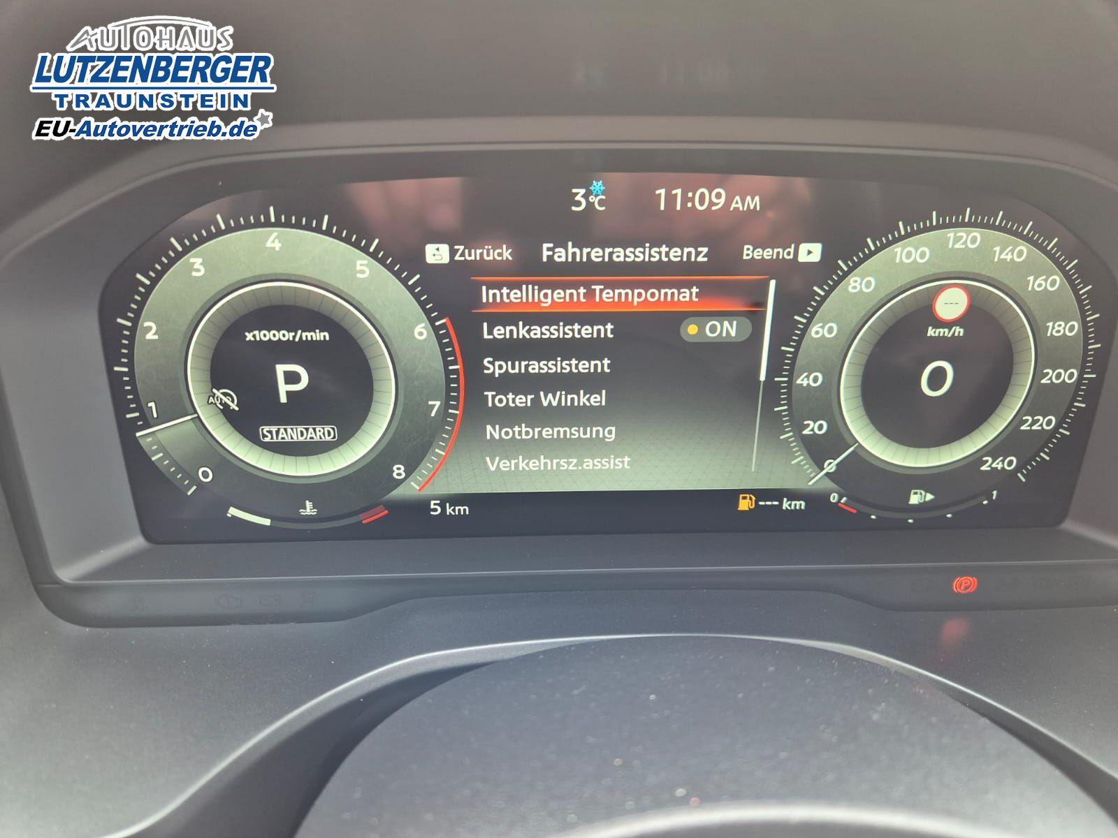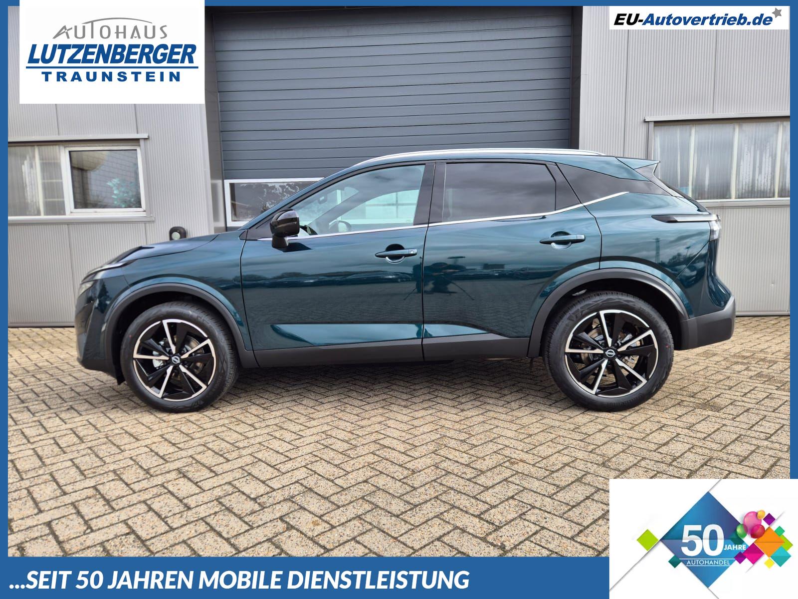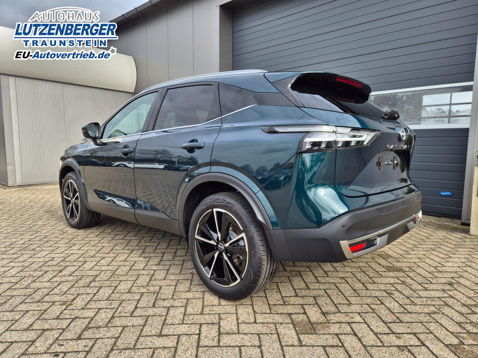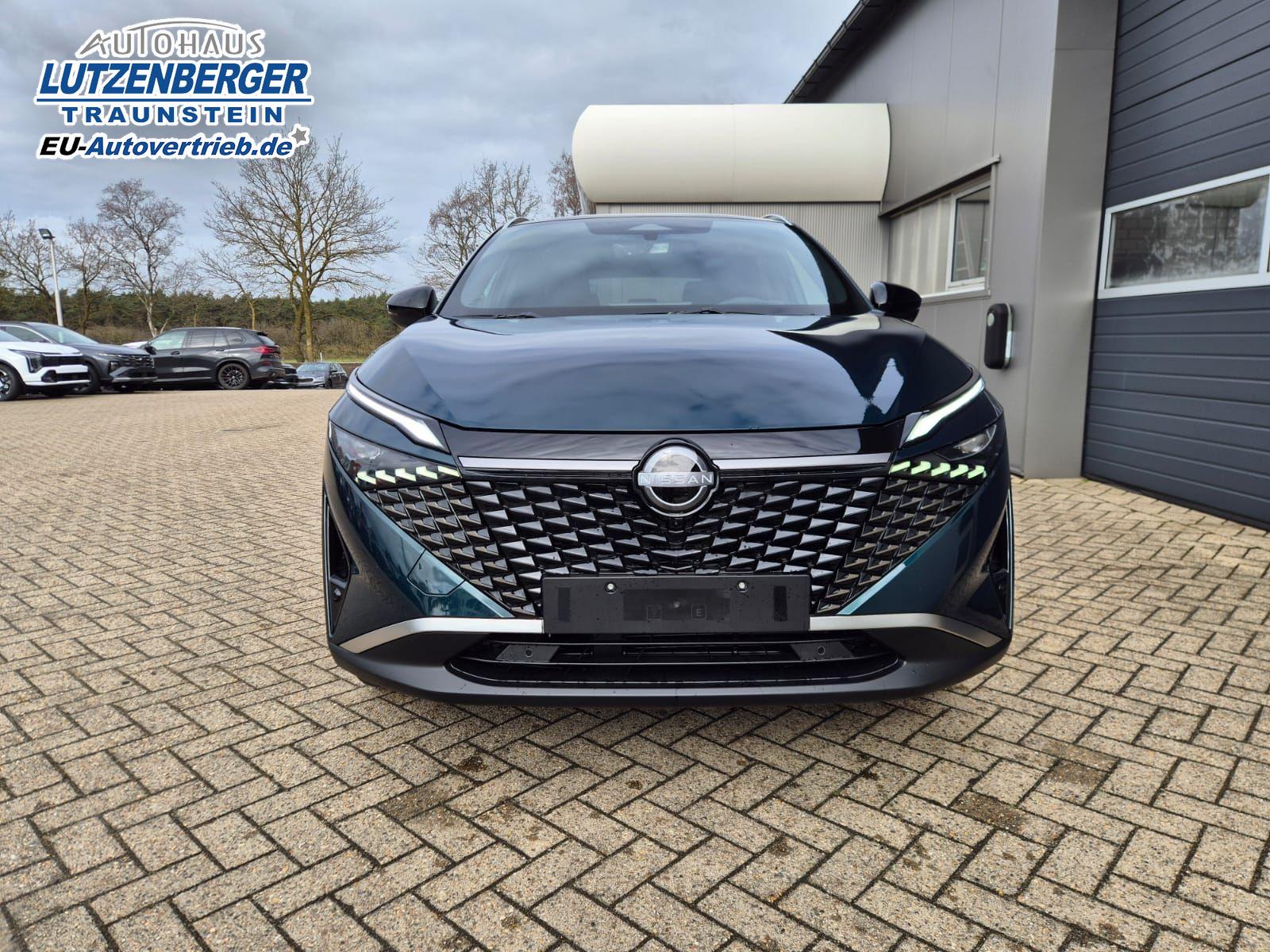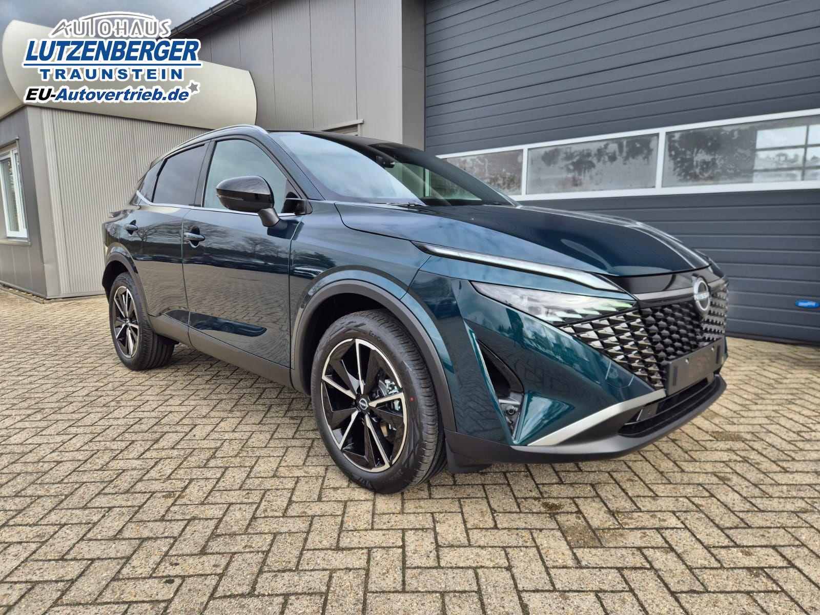 Nissan Qashqai 1.3 DIG-T MHEV 158 PS X-Tronic Tekna Voll-Leder Klimaautomatik PanoGlasdach Sitzheizung Lenkradheizung Navi Head-Up Display elektr. Heckklappe ACC PDC v+h 360°Kamera DAB Bluetooth Touchscreen Apple CarPlay Android Auto 19"LM