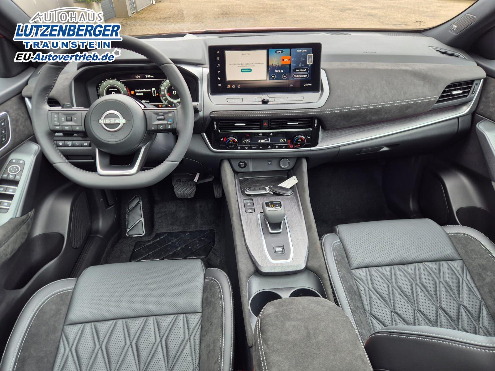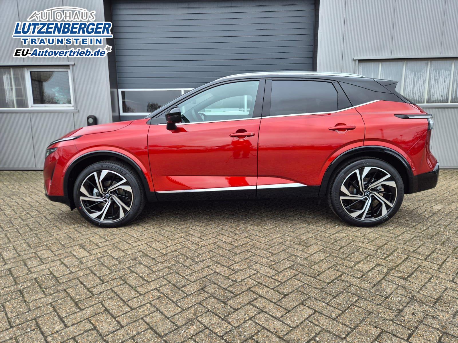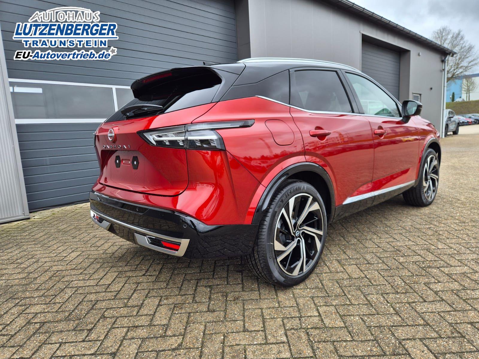 Nissan Qashqai 1.3 DIG-T MHEV 158 PS X-Tronic Tekna Premium Paket 20"LM Teil-Leder PanoGlasdach Klimaautomatik Sitzheizung Lenkradheizung Navi Head-Up Display elektr. Heckklappe ACC PDC v+h 360°Kamera DAB Bluetooth Touchscreen Apple CarPlay Android Auto