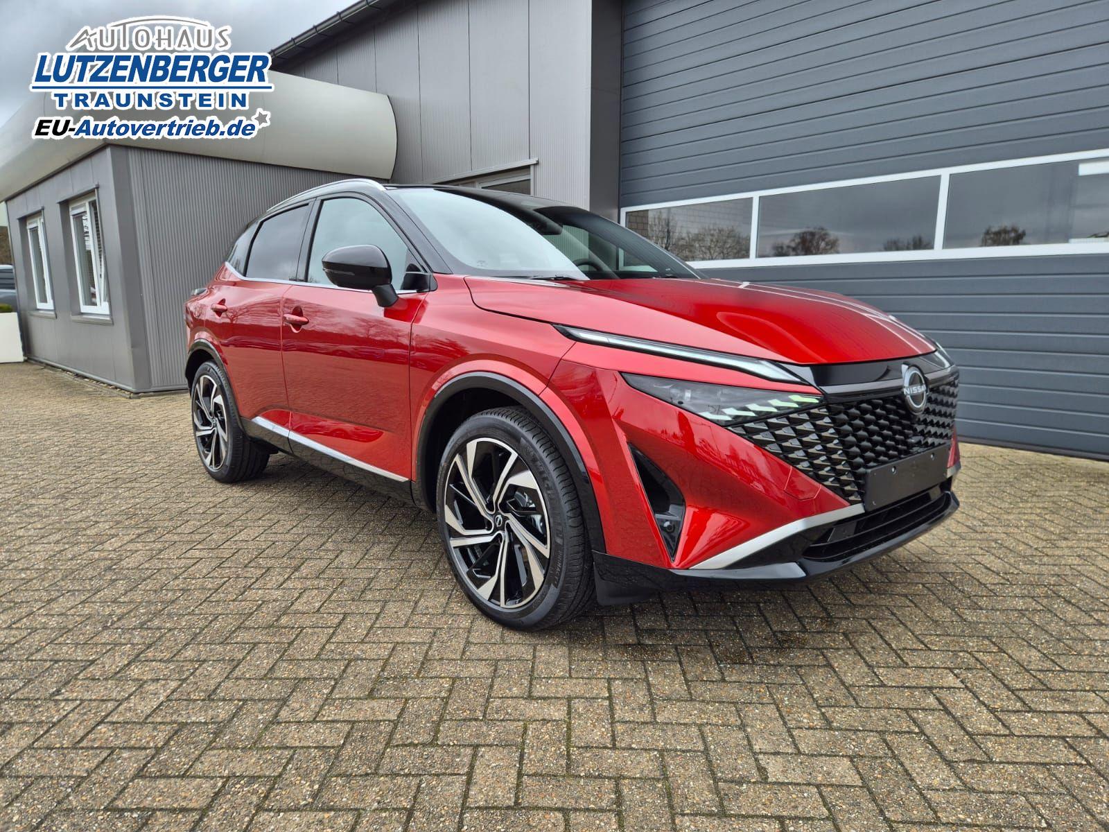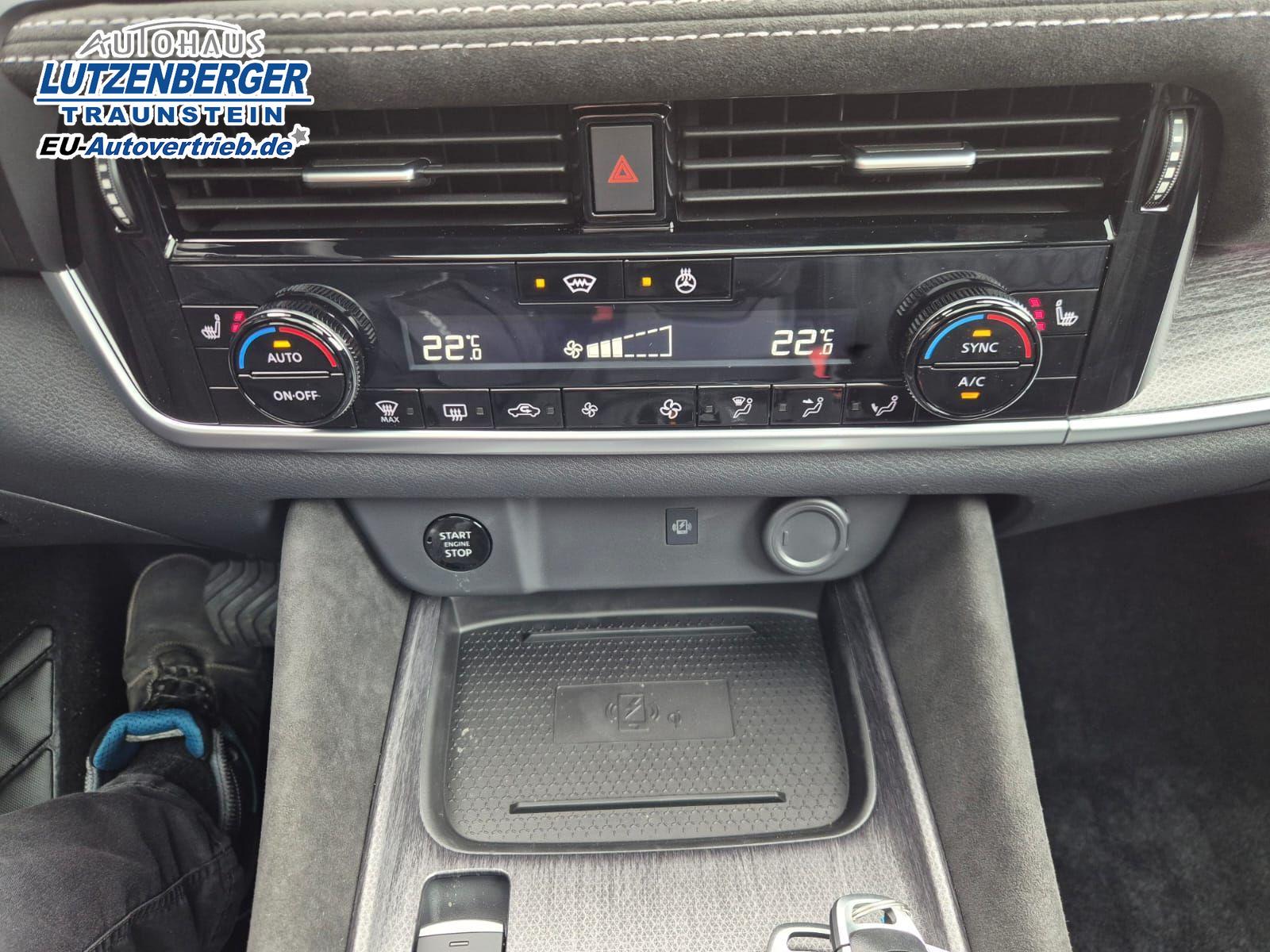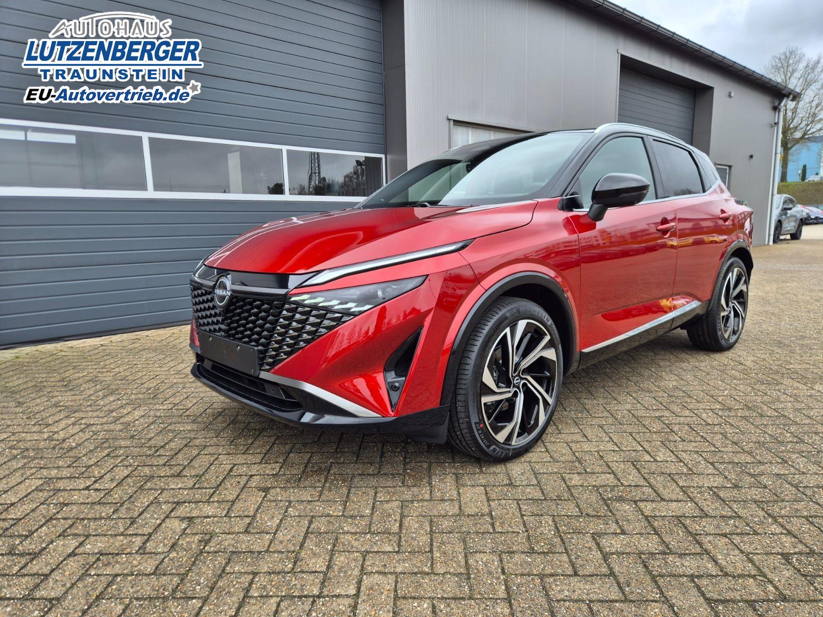 Nissan Qashqai 1.3 DIG-T MHEV 158 PS X-Tronic Tekna Premium Paket 20"LM Teil-Leder PanoGlasdach Klimaautomatik Sitzheizung Lenkradheizung Navi Head-Up Display elektr. Heckklappe ACC PDC v+h 360°Kamera DAB Bluetooth Touchscreen Apple CarPlay Android Auto