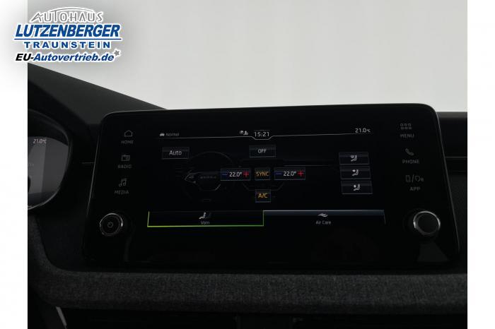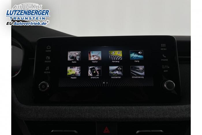2 USB Anschlüsse (Typ-C), 2x USB-C-Anschluss hinten, 8 Lautsprecher, Bluetooth, Infotainmentsystem mit 8-Display, SmartLink, Easy Light Assist (Lichtsensor), LED-Rückleuchten, LED-Scheinwerfer, LED-Tagfahrlicht, Nebelscheinwerfer vorn, Elektrische Fensterheber vorne und hinten, Sunset (Heckscheibe und hintere Seitenscheiben dunkel getönt), Armlehne mit JumboBox, Doppelter Laderaumboden im Kofferraum, Ledermultifunktionslenkrad mit Tiptronic, Netz unter der Gepäckraumabdeckung, Climatronic 2-Zonen Klimaautomatik, City Plus Paket, Interieur-Paket, Technologie Paket, Winter Paket, 16 Leichtmetallfelgen Cortadero/Sargas silber, Stahlreservenotrad, Fahrer- und abschaltbarer Beifahrerairbag + Kopf- und Seitenairbags, vorne, Front Assist mit Warnung und automatisch Bremsen bei drohender Kollision mit Fahrzeugen, Personenerkennung, ISOFIX-Vorbereitung auf dem Beifahrersitz, Beheizte Vordersitze, Fahrersitz höhenverstellbar, Höheneinstellbare Vordersitze, Innenausstattung Loft, Stoff in Schwarz/Grau, Lendenwirbelstützen in den Rückenlehnen der Vordersitze, Garantieverlängerung auf 5 Jahre oder max. 100.000 km, Regenschirmablage inkl. Schirm in der Fahrertür, 12 Volt-Steckdose im Kofferraum, Digital Cockpit 8, Fahrmodusauswahl, KESSY - Schlüsselloses Zugangs- und Start-Stopp-System, Parksensoren hinten, Parksensoren vorn, Rückfahrkamera, Spurhalteassistent Lane Assist, Tempomat, Verkehrsschilderkennung, Zentralverriegelung mit Fernbedienung, Außenspiegel elektrisch einstellbar, Außenspiegel und Türgriffe in Wagenfarbe, Dachreling schwarz, Elektrisch einstell- und beheizbare Außenspiegel, Vorrüstung Anhängerkupplung, EU-Fahrzeug mit Tageszulassung