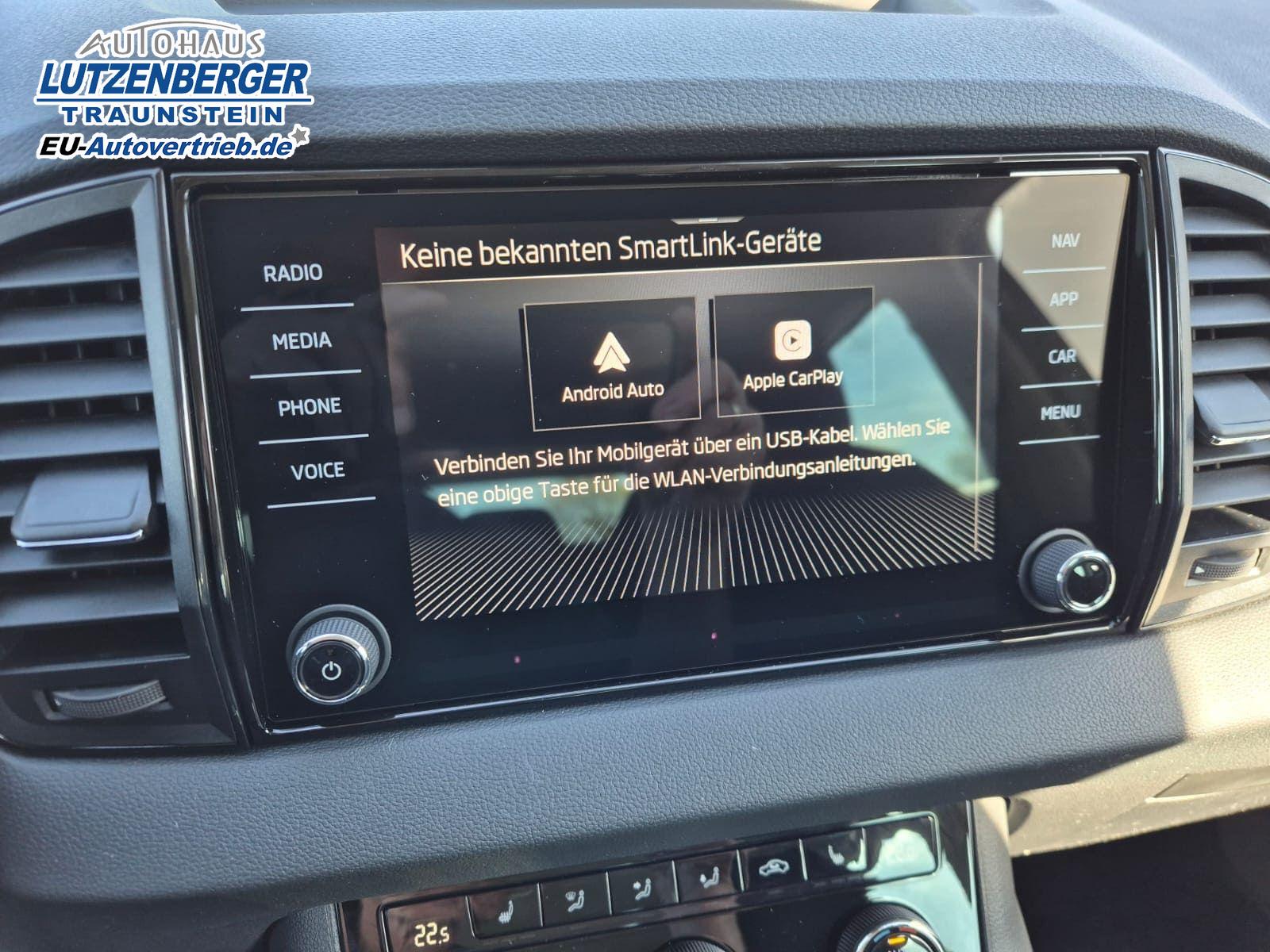 Skoda Karoq 1.5 TSI 150PS DSG Selection AHK Klimaautomatik Sitzheizung Lenkradheizung ACC PDC v+h Rückf.Kamera abg.Scheiben Apple CarPlay Android Auto 17"LM
